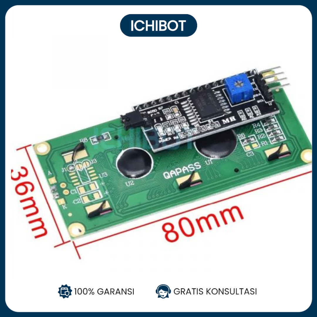 • Components: Blue 16×2 1602 lcd display + I2C serial interface backpack; 1602 lcd screen can display 2-lines x 16-characters with built-in industry standard HD44780 equivalent LCD controller.
