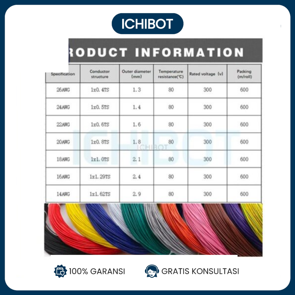 - Diameter 24 AWG: Cocok untuk berbagai aplikasi elektronik dan perakitan rangkaian.
