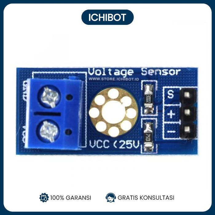 Merupakan modul yang berguna untuk mendeteksi dan mengukur tegangan. Modul ini Bekerja menggunakan prinsip pembagi tegangan resistor, dimana tegangan input yang dibaca pada output modul ini pembagian 5 terhadap tegangan input. ncontoh : njika tegangan yang ingin di deteksi pada modul ini adalah 30V DC, maka output dari modul ini adalah 30/5 = 6V DC. Perlu diperhatikan, jika menggunakan arduino yang bekerja pada 5V DC, maka tegangan maksimum yang ingin dideteksi adalah 5v x 5 = 25V DC. hal ini untuk menghindari input arduino melebihi 5V ( tegangan dimana arduino bekerja). Sama hal nya dengan arduino yang bekerja dengan 3.3V DC, maka tegangan input yg ingin dideteksi, maksimal adalah 3.3V x 5 = 16,5V DC