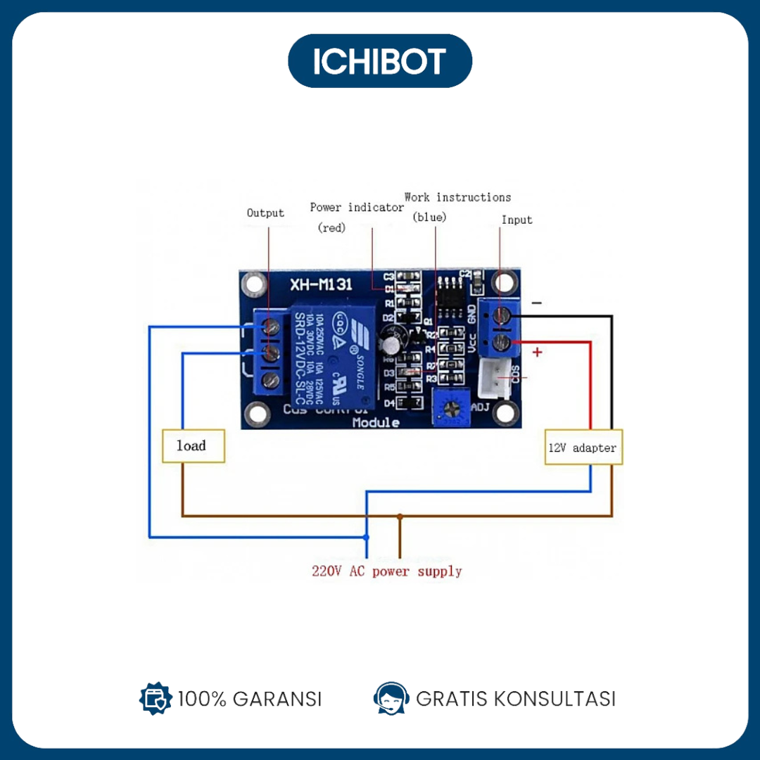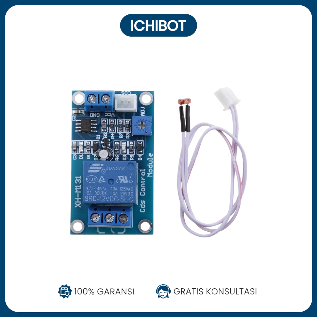 Modul XH-M131 Photoresistor Auto Light Control 12V adalah modul otomatis yang menggunakan sensor cahaya (LDR/photoresistor) untuk menghidupkan atau mematikan beban listrik berdasarkan intensitas cahaya di sekitarnya. Modul ini umum dipakai untuk lampu otomatis malam hari, lampu taman, atau sistem pencahayaan hemat energi.